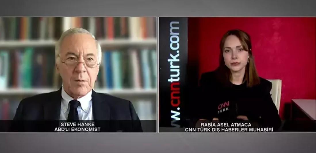 Steve Hanke: Birinci sebep, Türkiye'den çok fazla takipçim olması ve Türkiye'ye çok sık gelmem. Bir başka nedenden dolayı da Türkiye'yi seviyoruz. Diyelim ki eşim ve ben Türklerin neyi seveceğini biliyoruz ve yapıyorlar.