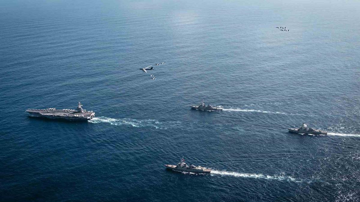 USS Gerald R. Ford liderliğindeki saldırı filosunun, 4 binin üzerinde askeri personel ve onlarca taktik askeri uçak taşıdığı kaydedilerek, “Sınıfının ilk uçak gemisi olan USS Gerald R. Ford, sabit kanatlı uçakların gece gündüz aynı anda iniş-kalkış yapmasına olanak tanıyarak sürekli olarak katıldığı operasyonlara destek verebilmektedir.” hatırlatıldı. Uçak gemisi USS Gerald R. Ford’un yanı sıra Arleigh Burke sınıfı güdümlü füze destroyerleri USS Bainbridge ve USS Mahan ile entegre hava ve füze savunma komuta gemisi USS Winston S. Churchill’in de aralarında bulunduğu çok sayıda askeri varlığın bölgeye konuşlandırıldığı belirtildi.